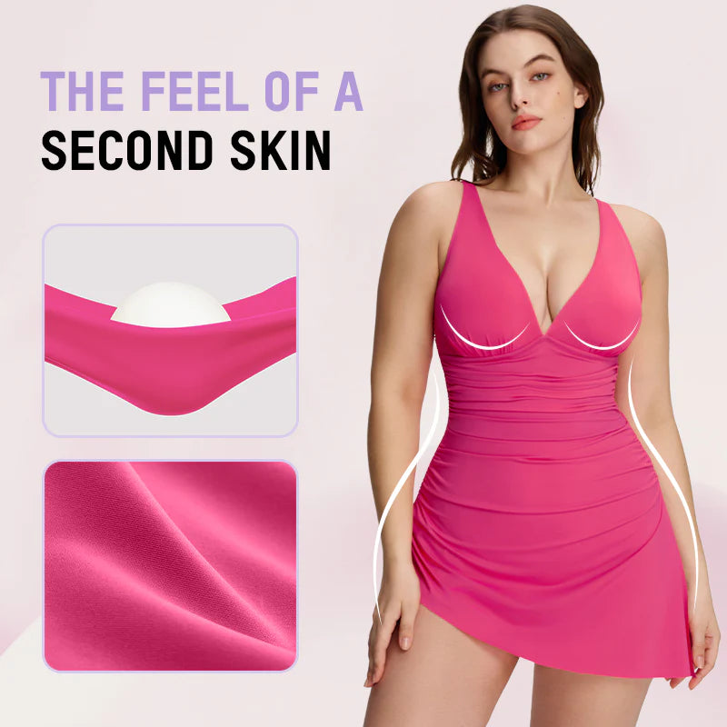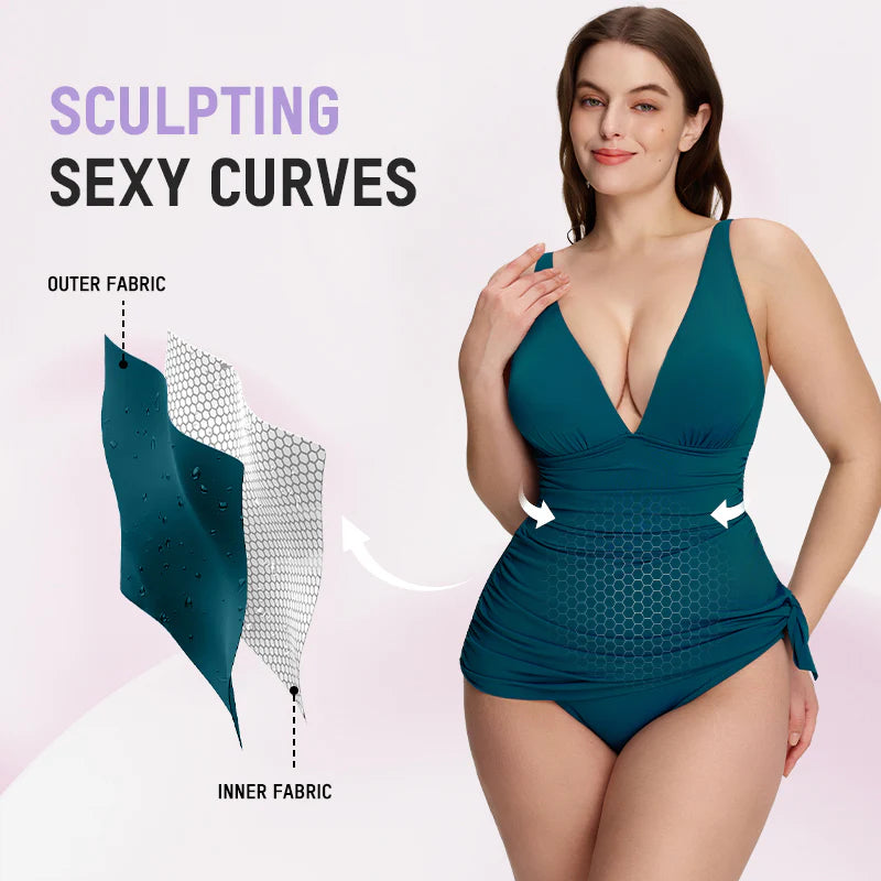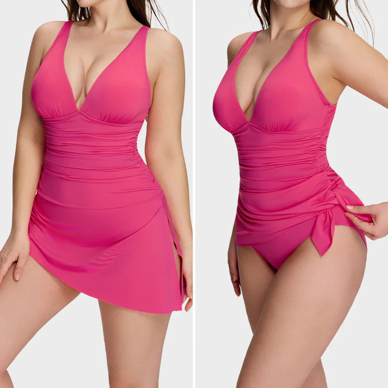 Ruched V-Neck Side Tie Slimming Swim Dress